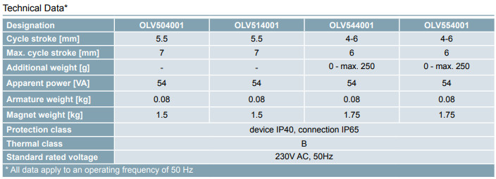230V, 50HZ, 100% ED, Stroke 6mm (stock code 2151018)