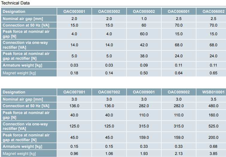 -List type OAC : Kendrion OAC003001, Kendrion OAC003002, Kendrion OAC005002,