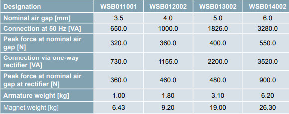 -List Type WSB : Kendrion WSB010001, Kendrion WSB010002, Kendrion WSB011001,